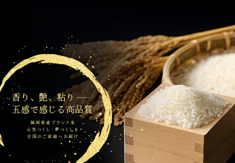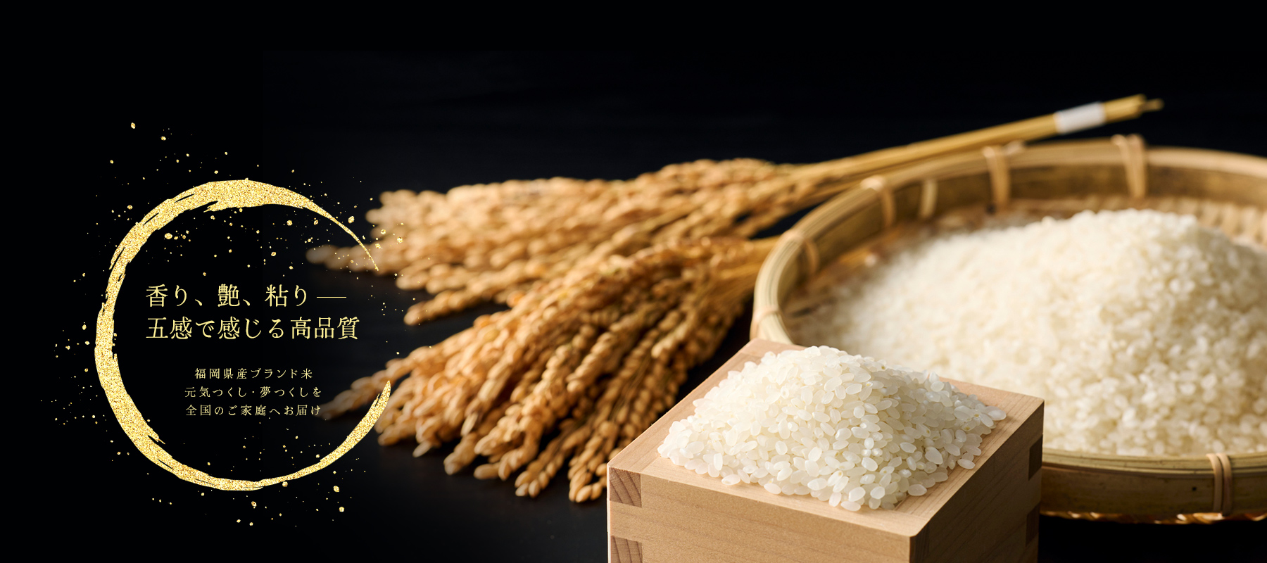 福岡県は北九州市。 豊かな自然に囲まれた田んぼで、太陽の光と風に育まれた「元気つくし」「夢つくし」。 口に入れた瞬間、甘みと香りが広がり、日常のひと口を特別にします。